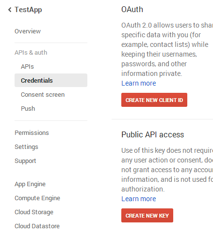 Once on, click on Credentials under APIs & auth on the left.
