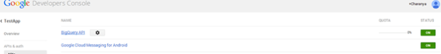 Click on APIs & auth to the left. Google turns some APIs on by default for you, but GCM is not one of them. Scroll down to find ‘Google Cloud Messaging for Android’ and turn it on.