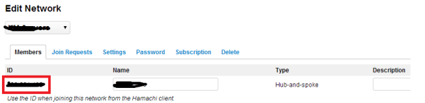 Now you can Join the network you just created. First on the LogMeIn website, go to My Networks and go into the Edit screen for the network you just created. That will show you the Network ID of that network.