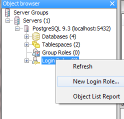In the Object Browser, right-click Login Roles > New Login Role and create user alfresco. Apart from the role name, other settings may be left as default.